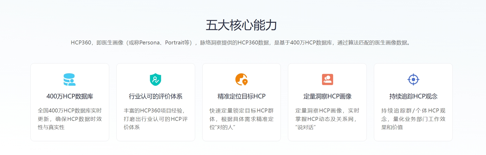 脉客全书具有五大核心能力,可充分满足药企营销需求